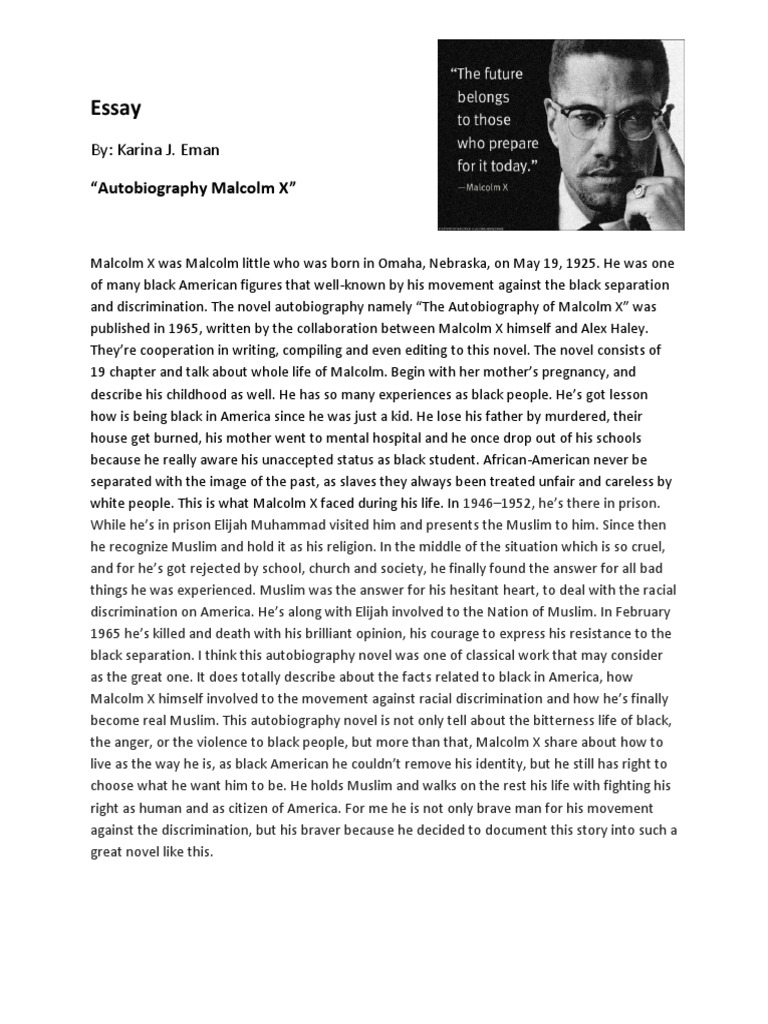 Aug 29, · This is the tradition of Carter G. Woodson, Frederick Douglass, and Malcolm X. It argues for education not simply as credentialism or certification, but as a profound act of auto-liberation Narrative Essay On A Family Vacation. We were on a family vacation, but not any family vacation. There were 70 people on this trip. It was the summer of , we went to Amman and decided to go to Aqaba Nov 22, · Malcolm x essay learning to read. Essay on the variations essay about mental disorders: taj mahal essay in hindi words. Importance of family ties essay sustainable development reduce reuse recycle essay format report essay spm essay
